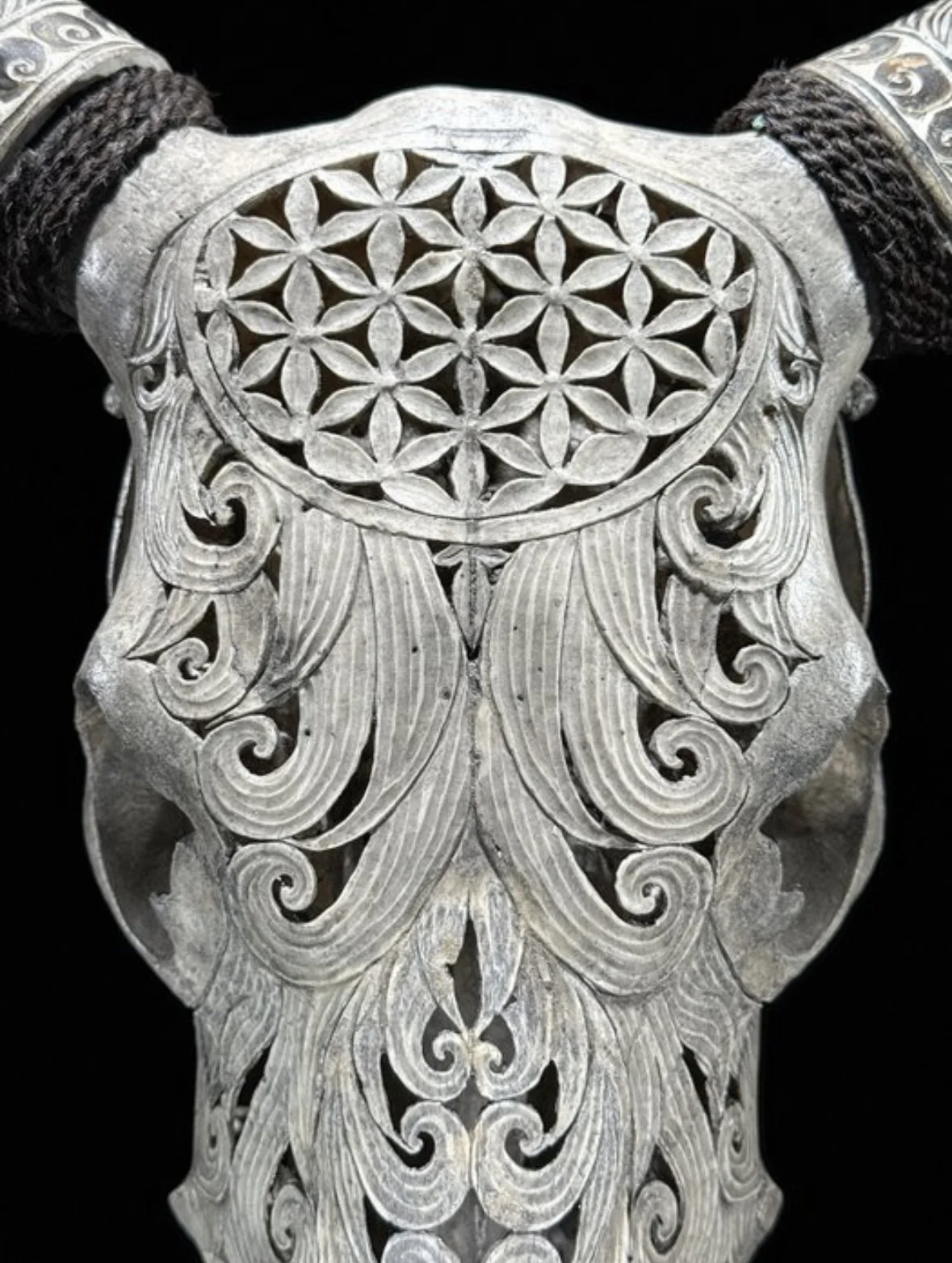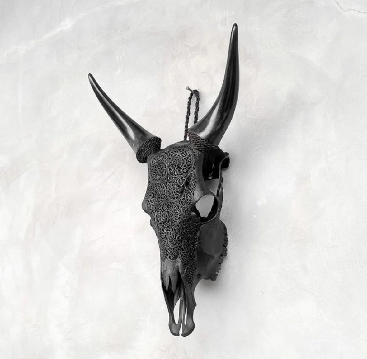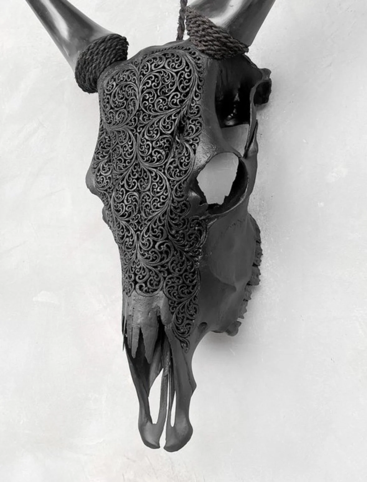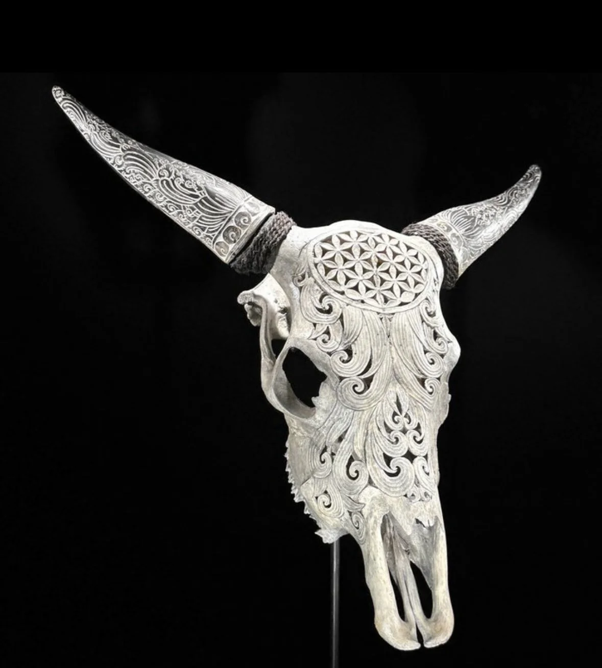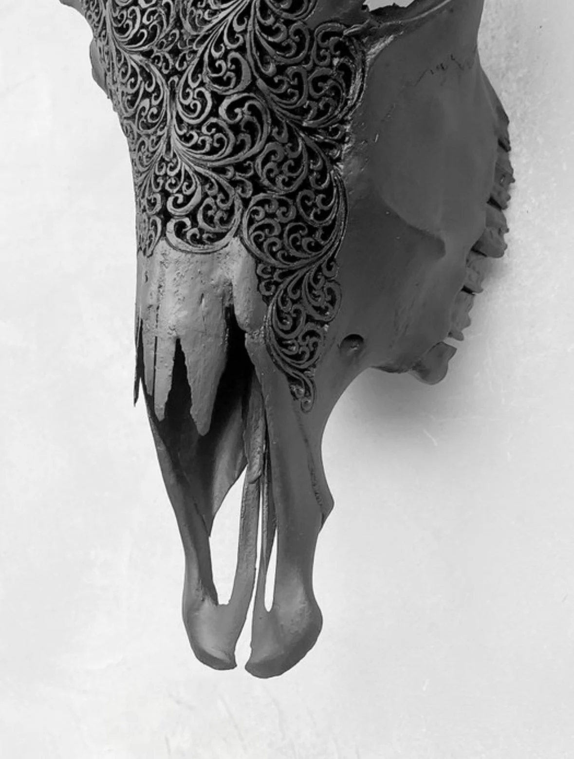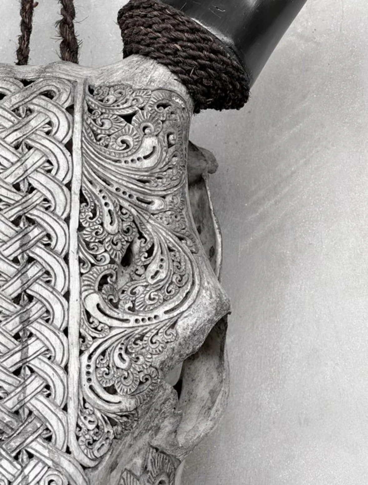 Categories: All Statuettes Handcarved Skulls Free-standing Decors Ceiling Decors Serving Boards Design Vessels Coffee Tables Wall Decors All / Handcarved Skulls All Statuettes Handcarved Skulls Free-standing Decors Ceiling Decors Serving Boards Design Vessels Coffee Tables Wall Decors Hand-carved cow skull - tree of life motif €200.00 Add To Cart Added! Hand-carved black bull skull - Infinity motif €240.00 Add To Cart Added! Hand-carved black goat skull with carved horn - Traditional Balinese motif €140.00 Add To Cart Added! Hand-carved black cow skull - Fern motif €180.00 Sold out Sold Out Added! Hand-carved grey cow skull with carved horns - Flower of Life Motif €200.00 Add To Cart Added! Hand-carved grey cow skull - Infinity motif €180.00 Add To Cart Added! Authentic Cow Skull with Glass Mosaic Inlay Sale Price: €180.00 Original Price: €240.00 Sale Add To Cart Added!