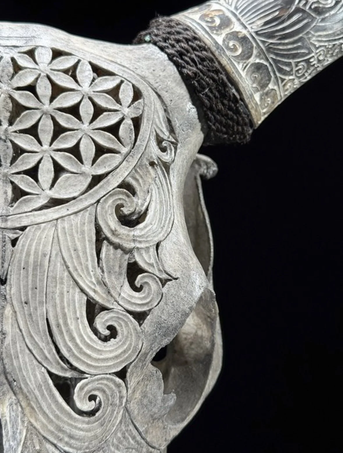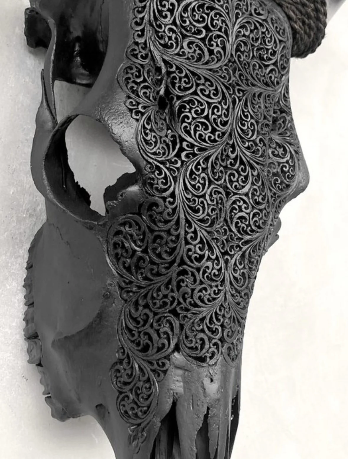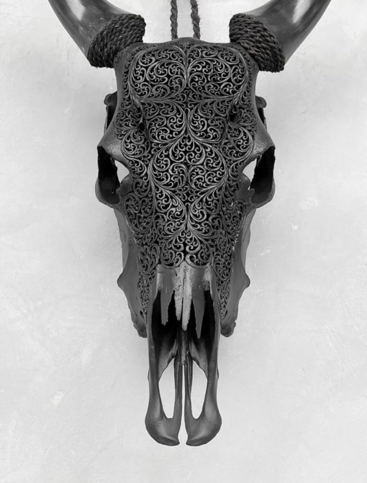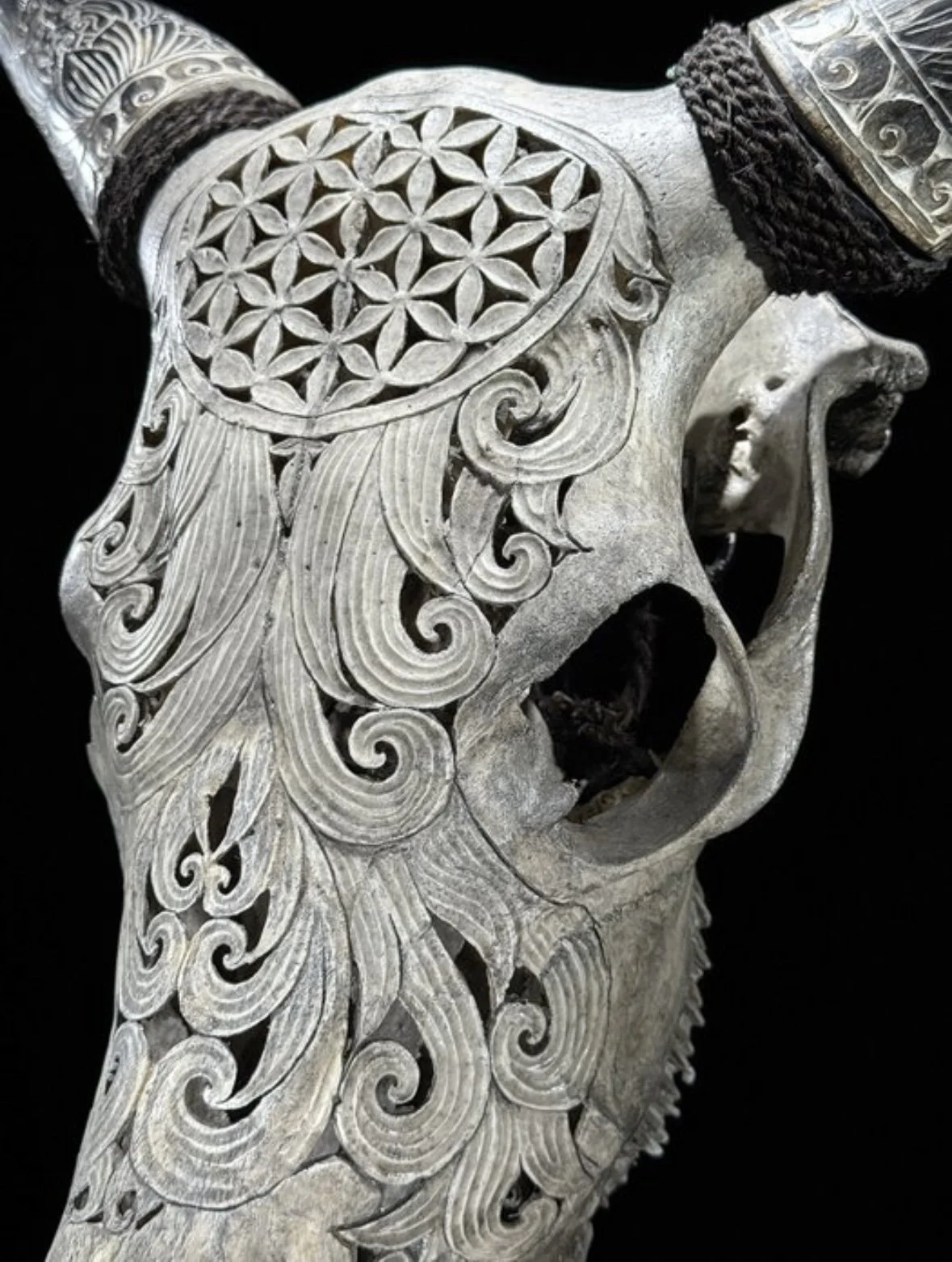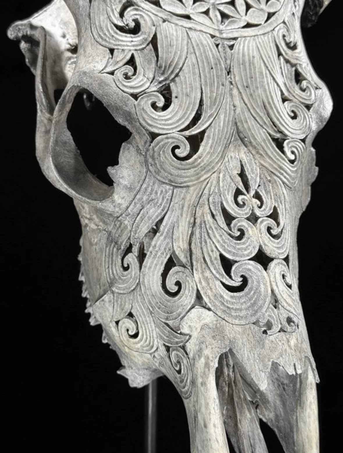Categories: All Statuettes Handcarved Skulls Free-standing Decors Ceiling Decors Serving Boards Design Vessels Coffee Tables Wall Decors All / Handcarved Skulls All Statuettes Handcarved Skulls Free-standing Decors Ceiling Decors Serving Boards Design Vessels Coffee Tables Wall Decors Hand-carved cow skull - tree of life motif €200.00 Add To Cart Added! Hand-carved black bull skull - Infinity motif €240.00 Add To Cart Added! Hand-carved black goat skull with carved horn - Traditional Balinese motif €140.00 Add To Cart Added! Hand-carved black cow skull - Fern motif €180.00 Sold out Sold Out Added! Hand-carved grey cow skull with carved horns - Flower of Life Motif €200.00 Add To Cart Added! Hand-carved grey cow skull - Infinity motif €180.00 Add To Cart Added! Authentic Cow Skull with Glass Mosaic Inlay Sale Price: €180.00 Original Price: €240.00 Sale Add To Cart Added!
