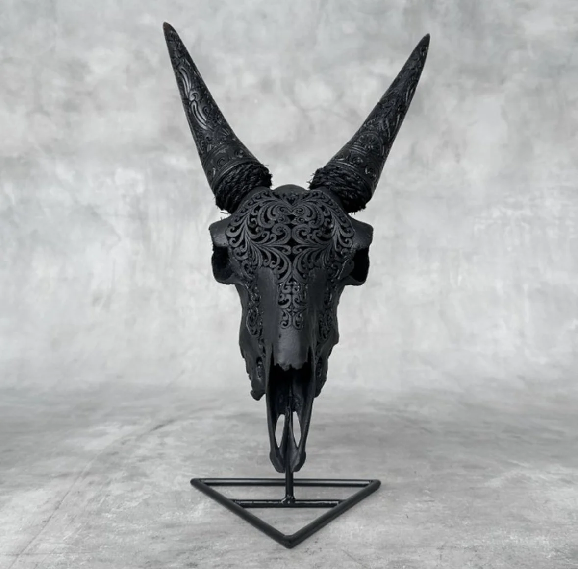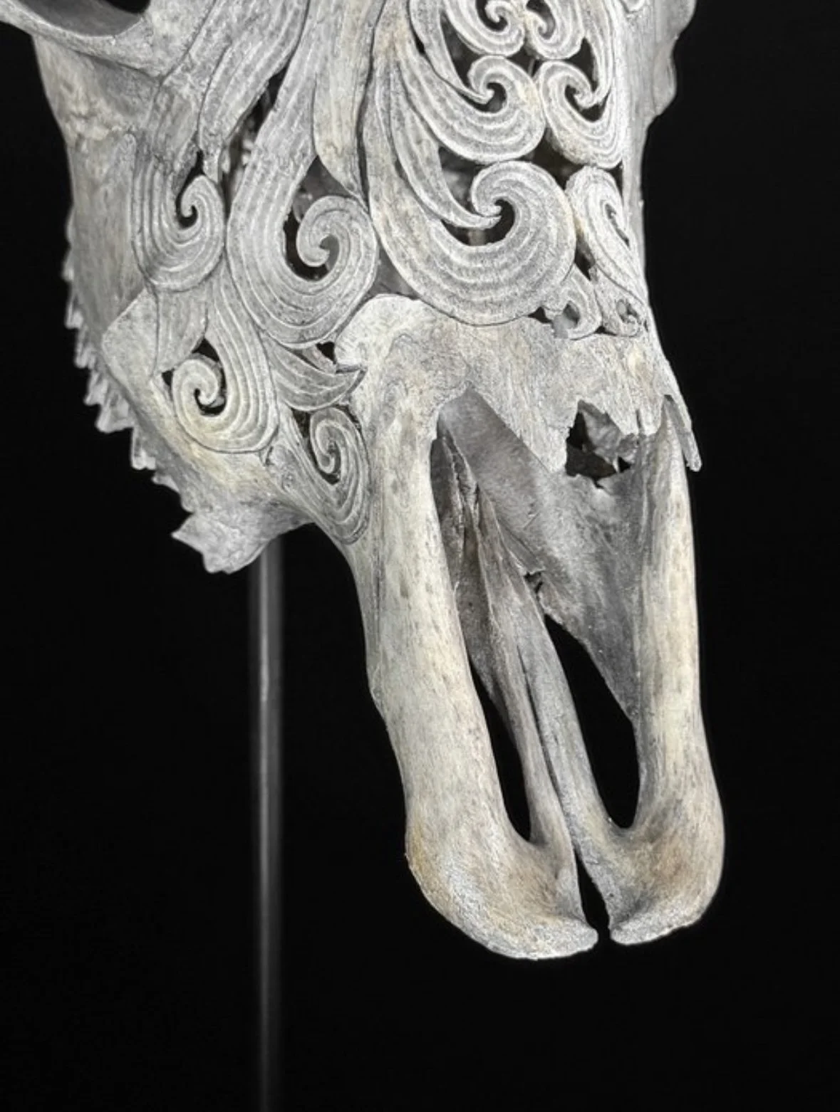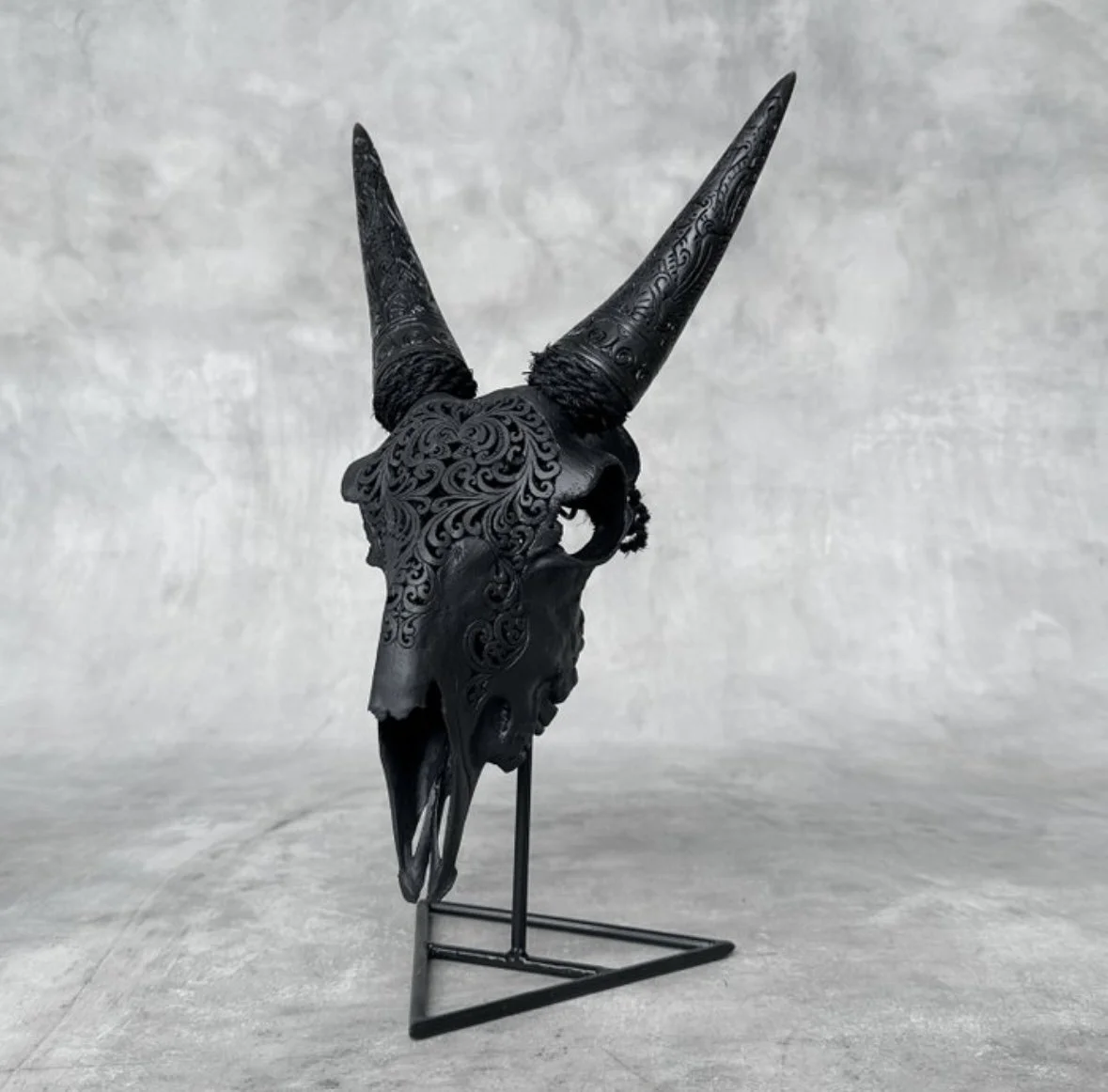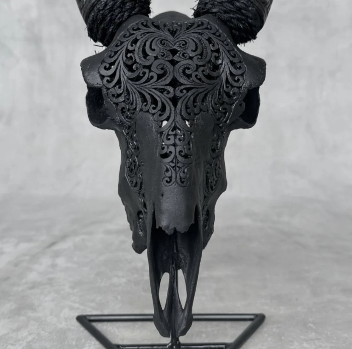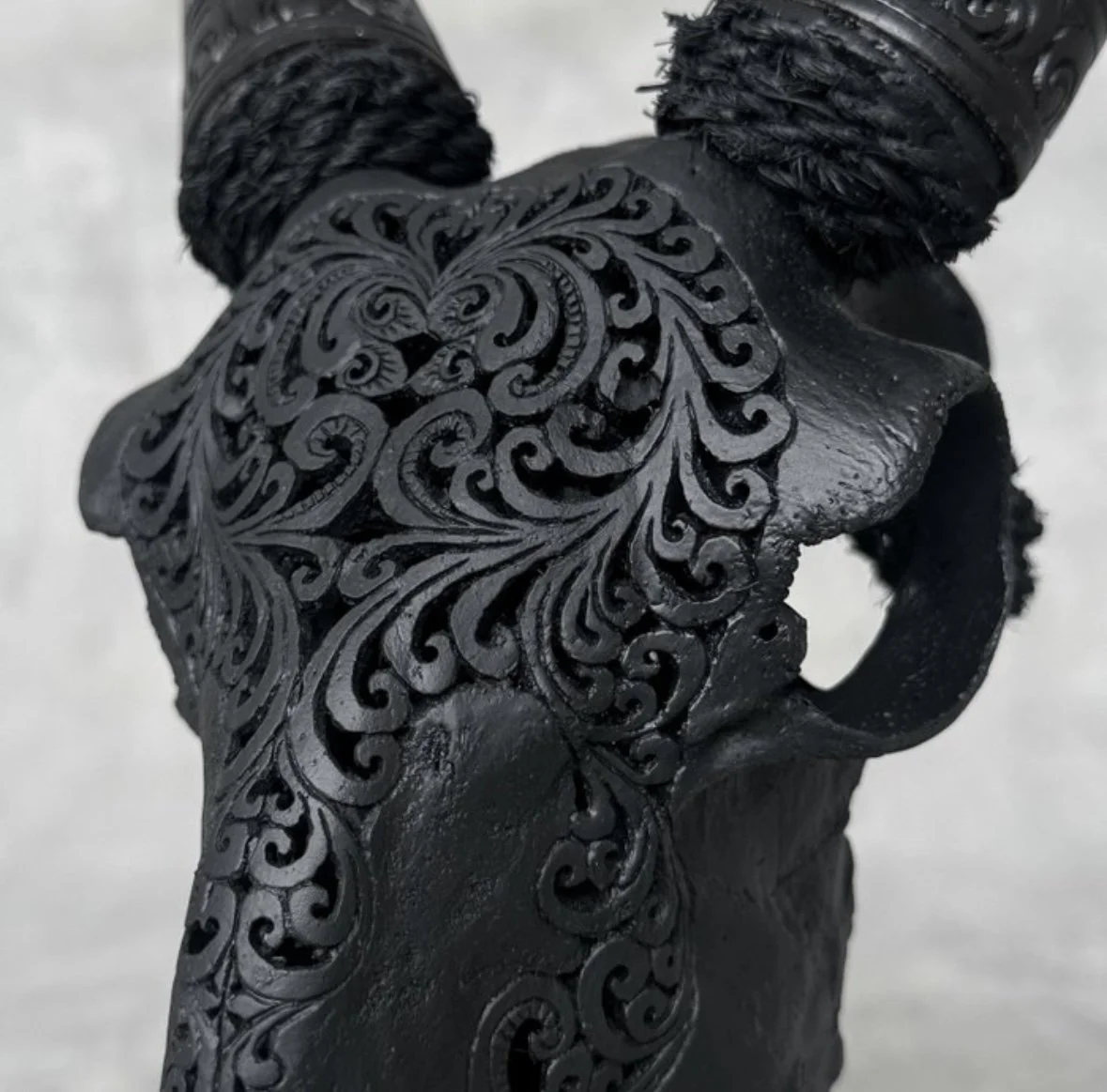 Categories: All Statuettes Handcarved Skulls Free-standing Decors Ceiling Decors Serving Boards Design Vessels Coffee Tables Wall Decors All / Handcarved Skulls All Statuettes Handcarved Skulls Free-standing Decors Ceiling Decors Serving Boards Design Vessels Coffee Tables Wall Decors Hand-carved cow skull - tree of life motif €200.00 Add To Cart Added! Hand-carved black bull skull - Infinity motif €240.00 Add To Cart Added! Hand-carved black goat skull with carved horn - Traditional Balinese motif €140.00 Add To Cart Added! Hand-carved black cow skull - Fern motif €180.00 Sold out Sold Out Added! Hand-carved grey cow skull with carved horns - Flower of Life Motif €200.00 Add To Cart Added! Hand-carved grey cow skull - Infinity motif €180.00 Add To Cart Added! Authentic Cow Skull with Glass Mosaic Inlay Sale Price: €180.00 Original Price: €240.00 Sale Add To Cart Added!